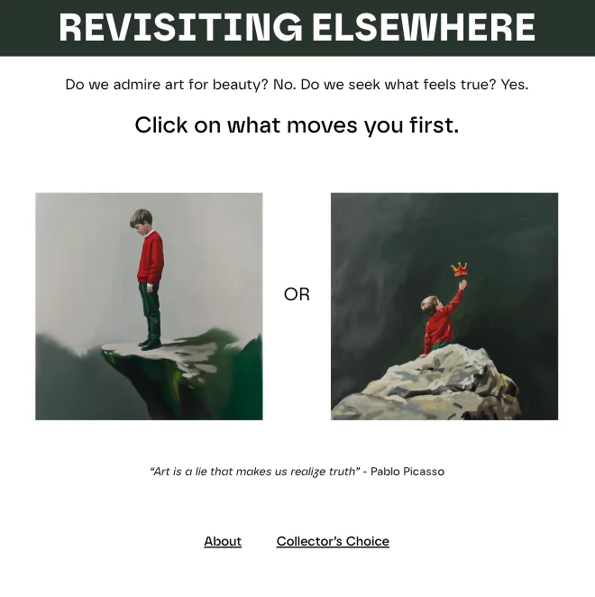 Before collecting, visitors step into a small experiment in feeling: a tool that presents two artworks side by side and asks a single question — Which one moves you first?